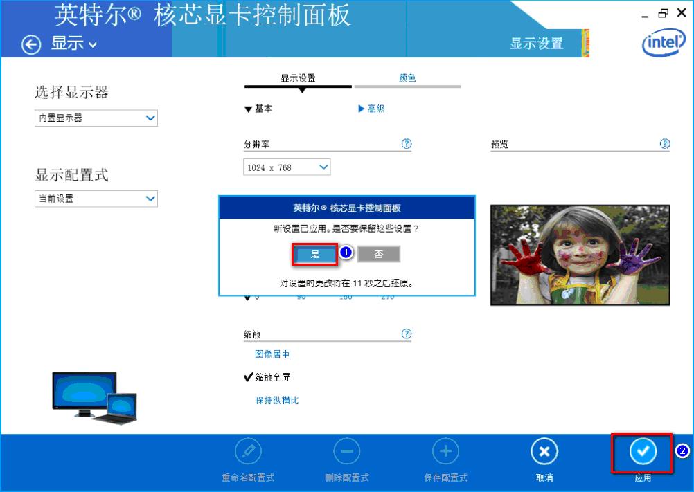 6. 最后將分辨率改回原始的分辨率,點擊“是”,點擊“應用”。