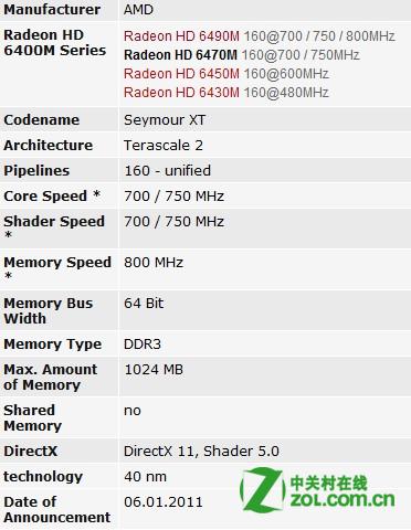 AMD Radeon HD 6470M只能使用GDDR3的顯存顆粒,120個(gè)流處理器性能比較低,相比現(xiàn)在的AMD Radeon HD 7670M 480個(gè)流處理器就捉襟見肘了。相比AMD Radeon HD 7670M的GDDR3版本的128bit顯存位寬,AMD Radeon HD 6470M只有64bit很顯然性能差上很多。