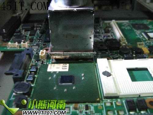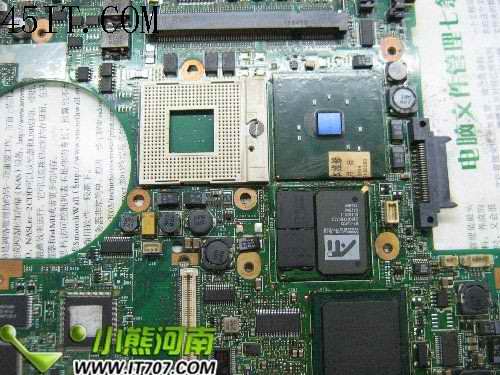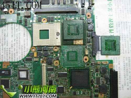 手術的原材料是筆者的IBM ThinkPad T42主板,熟悉TP的人都知道,由于設計問題和芯片的原始問題,T4X系列機型的顯卡和南橋容易出現虛焊問題,表現為花屏、死機,嚴重了甚至不開機。此類問題的解決方法只有把芯片重新焊接在主板的焊盤上,由于北橋,顯卡,南橋此類的芯片都是采用了BGA焊接方式,只有用BGA設備把芯片吹下來,重新植球,然后再焊接上去,一般來說,在此過程中是有一定的風險,造成風險存在的原因一般是設備問題、溫度控制不好、芯片體質不好造成的。下面我們來看下具體的操作過程。