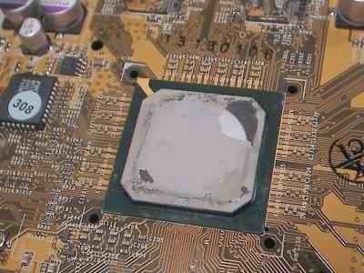 把散熱片移開后你就已經完成一半的工作了,現在接下來要做的是把氧化物的殘渣清除干凈。首先利用一個剃須刀片把殘渣盡可能的刮去(就像你剃須那樣)。然后用一個小木塊包住沙紙在GPU上打磨,這樣就能使GPU變得更加干凈和平滑些,我在這里使用的木塊是一些兒童用的積木。在打磨的時候要非常細心并且有耐性,絕不能著急,否則沙紙可能會劃傷GPU的核心。