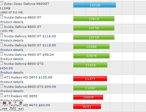 一些專業網站和愛好者經常會對主流顯卡進行測試,多多瀏覽這些測試會幫助用戶選擇最強性能的顯卡,再對比售價,可以找到自己心目中最理想的顯卡。比如,國外有網絡就為主流顯卡做了非常非常詳細的比較表格,點此查看。