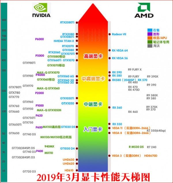 2019年2月顯卡天梯圖彩色版詳細版: