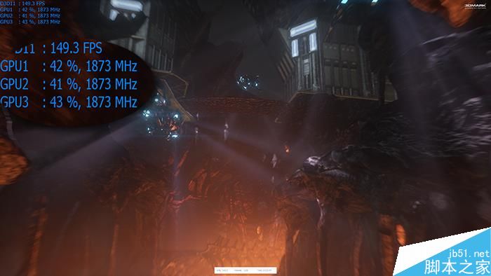 關于GTX 1080 Ti 三路SLI性能提醒幅度不高,我們可以從MSI Afterburner OSD監控功能中看到,三張三路GTX 1080 Ti負載均在40%左右,也就是存在跑不滿,測試項目不能很好地調動起多張顯卡進行畫面渲染。
