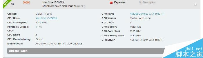 測試平臺當然是用擁有兩根全速PCI-E 3.0 x16插槽的x99主板ASUS X99-DELUXE,CPU是Intel Core i7-5960X,頻率超頻并固定在4.5GHz,內存是芝奇Ripjaws 4 DDR4 2666 8GB*4組成的四通道,測試系統Windows 10快速預覽版,采用最新的NVIDIA GeForce 378.78驅動,系統設置中開啟高性能模式。將會測試GTX 1080 Ti單卡、 GTX 1080 Ti 2x SLI、GTX 1080 Ti 3x SLI在3DMark基準測試以及游戲4K分辨率下性能差別。