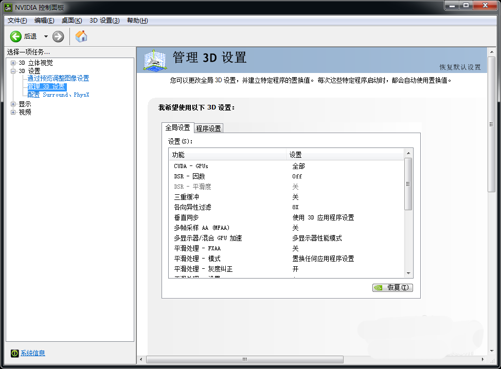 5、在3D設置里面有兩個設置,全局設置和程序設置