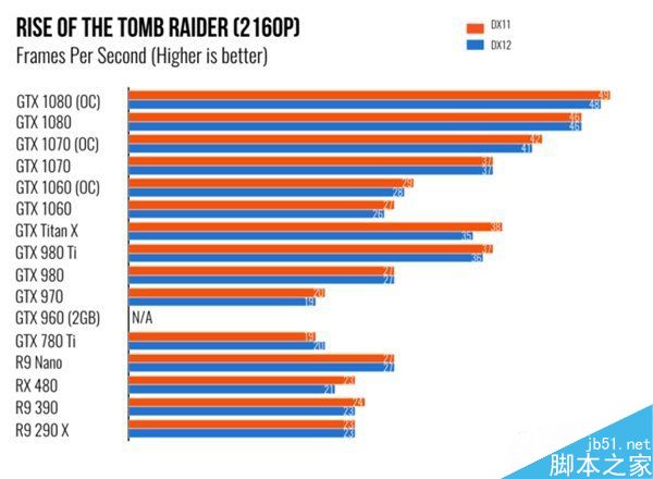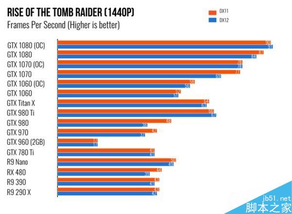 GTX 1060的確比GTX 980更快,但幅度是多大呢?在《古墓麗影:崛起》(DX11,1080p)當中,兩者的差距并不大,僅6%。而在大多數游戲當中,1060的幀數也只比980高出1-2幀,或者完全相同。但有意思的是,1060在1440p下表現更好,在《地鐵:最后曙光》和《殺手》兩款游戲中分別擁有7%和14%的提升。GTX 980更多的CUDA核心在4K分辨率下帶來了更大優勢,但兩款顯卡都并不適合如此高的分辨率,除非你愿意在畫質上做出巨大犧牲。