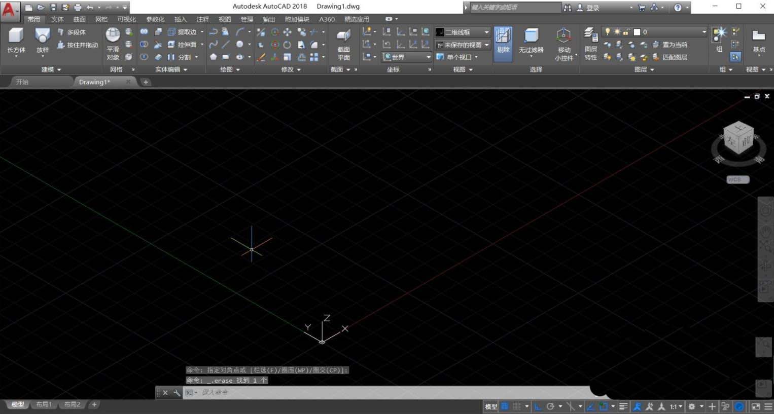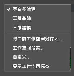 CAD中一共有三種空間模式。常用的是草圖于注釋(也就是二維空間)和三維建模。
