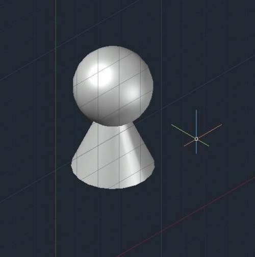 在繪制一個圓,圓心和圓錐頂點重合。這時候圓錐和圓是連個物體,我們使用并集命令將他們合并為1個。