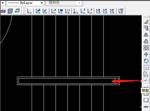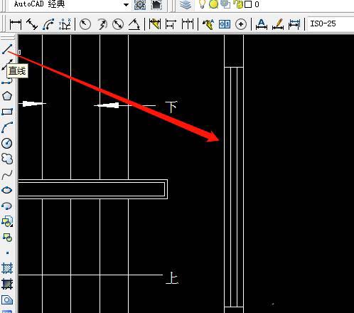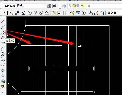 6、單擊修剪工具修剪多余的直線,選多段線工具繪制帶箭頭的直線。