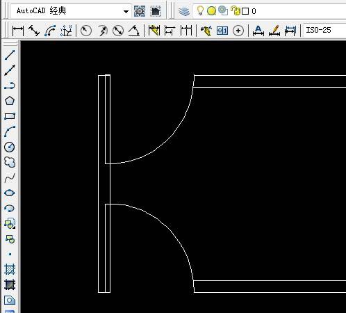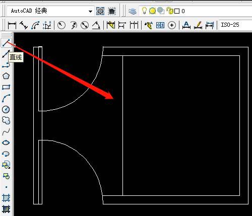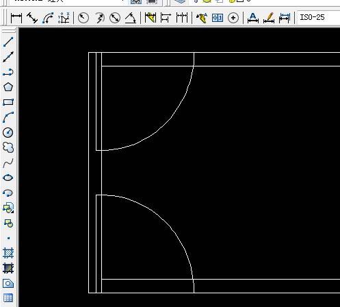 3、用矩形和橢圓弧工具繪制900的門,移至合適位置,用修剪工具修剪多余的線。