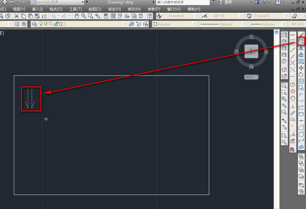4、選擇合適的鏡面,鏡像出另一個(gè)單箭頭,如下圖。