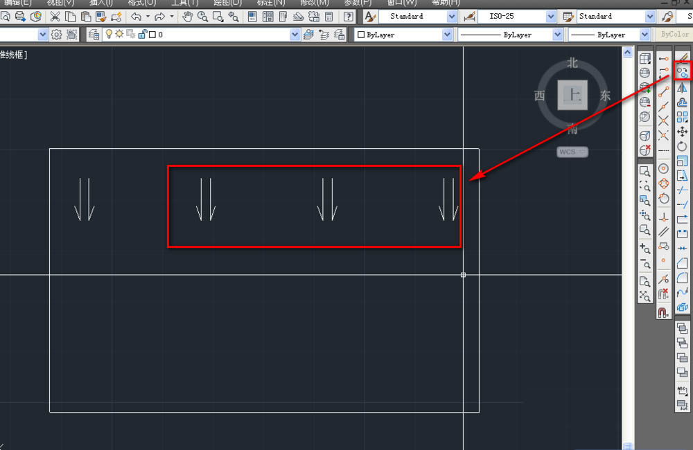 7、再次使用復(fù)制工具,關(guān)閉正交開(kāi)關(guān),復(fù)制下層的三個(gè),如下圖。