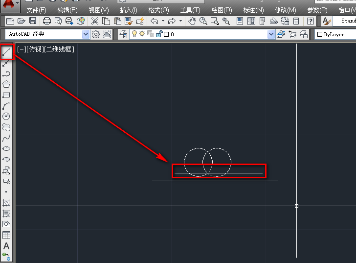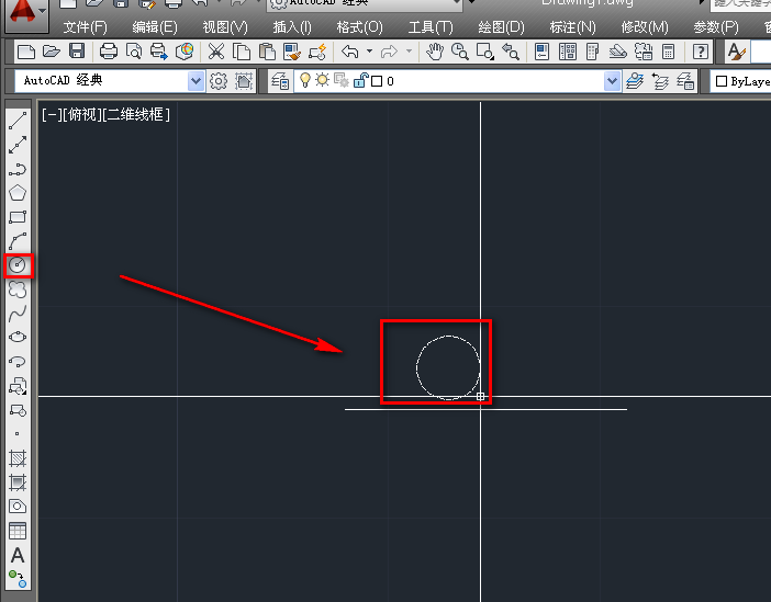 2、在直線的上方,使用圓工具繪制一個圓,如下圖。