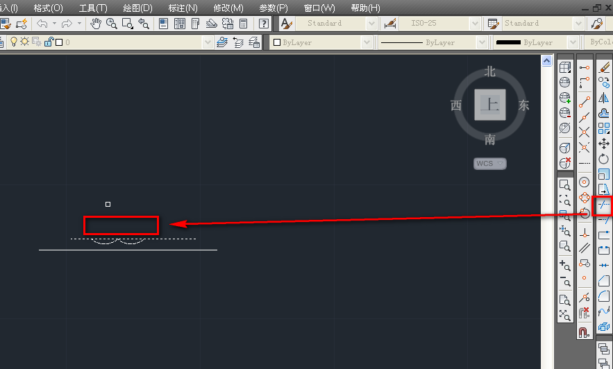 1、打開cad,使用繪制直線工具,在作圖區繪制一條直線段,如下圖。