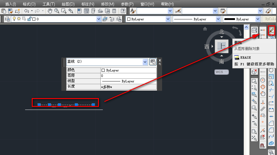 6、使用刪除工具,刪除直線段,如下圖。