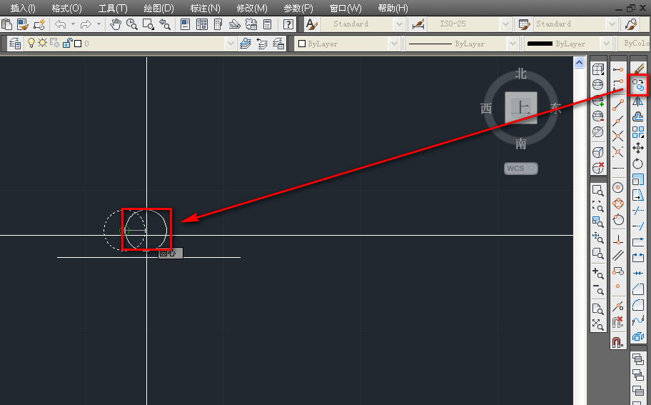 3、使用復制工具,復制一個圓與原來的圓相交,如下圖。