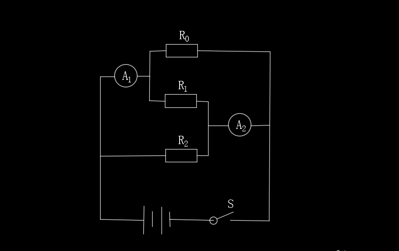 8、我們再按照以上的方法,再在電路圖中畫出其他的電阻及電流表符號,如圖所示: