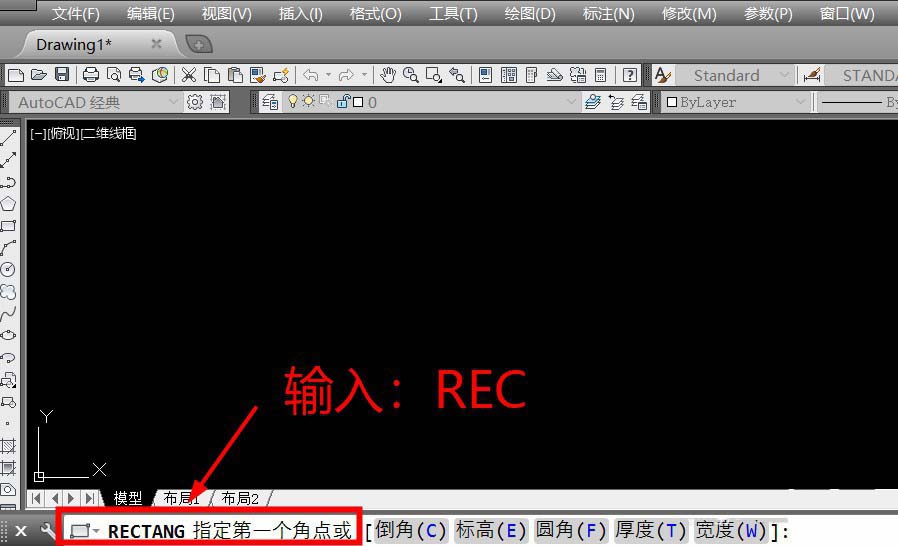 1、開啟CAD,輸入命令:REC,按下空格鍵。