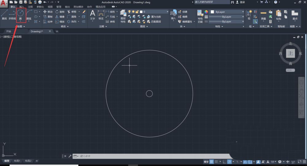 3、在大圓和小圓之間繪制一個不大不小的圓,作為輔助