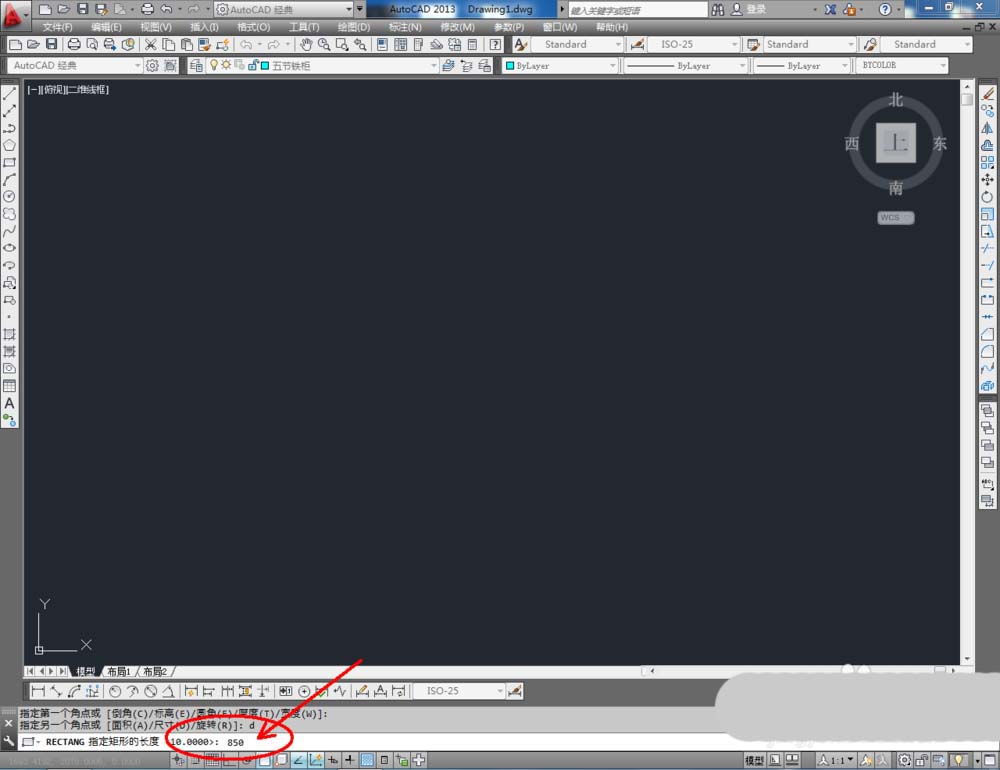 2、點擊【矩形工具】,按圖示在命令欄輸入:d并按下空格鍵,輸入長度數值:850并按下空格鍵,繼續輸入寬度數值:390并按下空格鍵,完成矩形圖案的繪制(如圖所示);