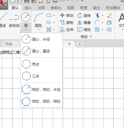 5、點(diǎn)擊圓,選擇兩點(diǎn)這個(gè)方式畫圓