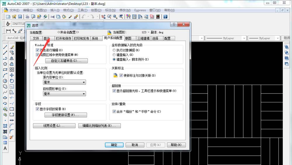3、接下來在選項中找到并點擊顯示,如圖所示;