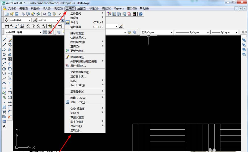 2、我們點擊圖中工具選項下的選項按鈕,如圖所示;