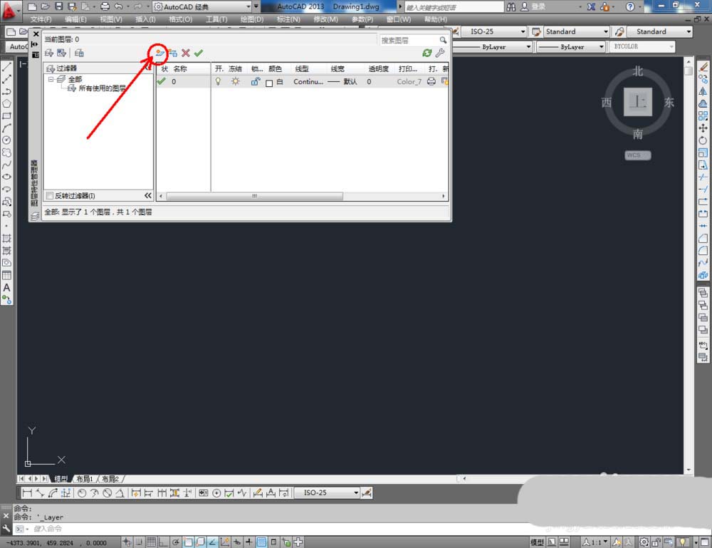 1、打開AutoCAD 2013軟件,點擊【圖層特性管理器】,點擊【新建圖層】,將圖層命名為:方形拼花。點擊色塊,按圖示設置一個圖層顏色,完成方形拼花圖層的設置(如圖所示);