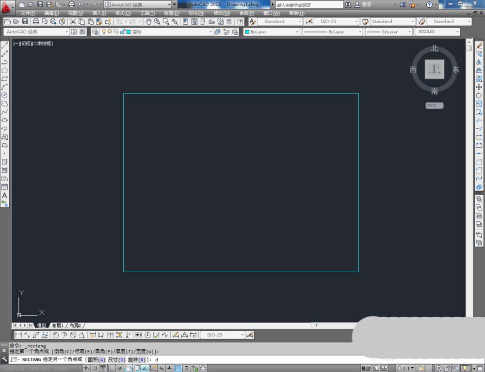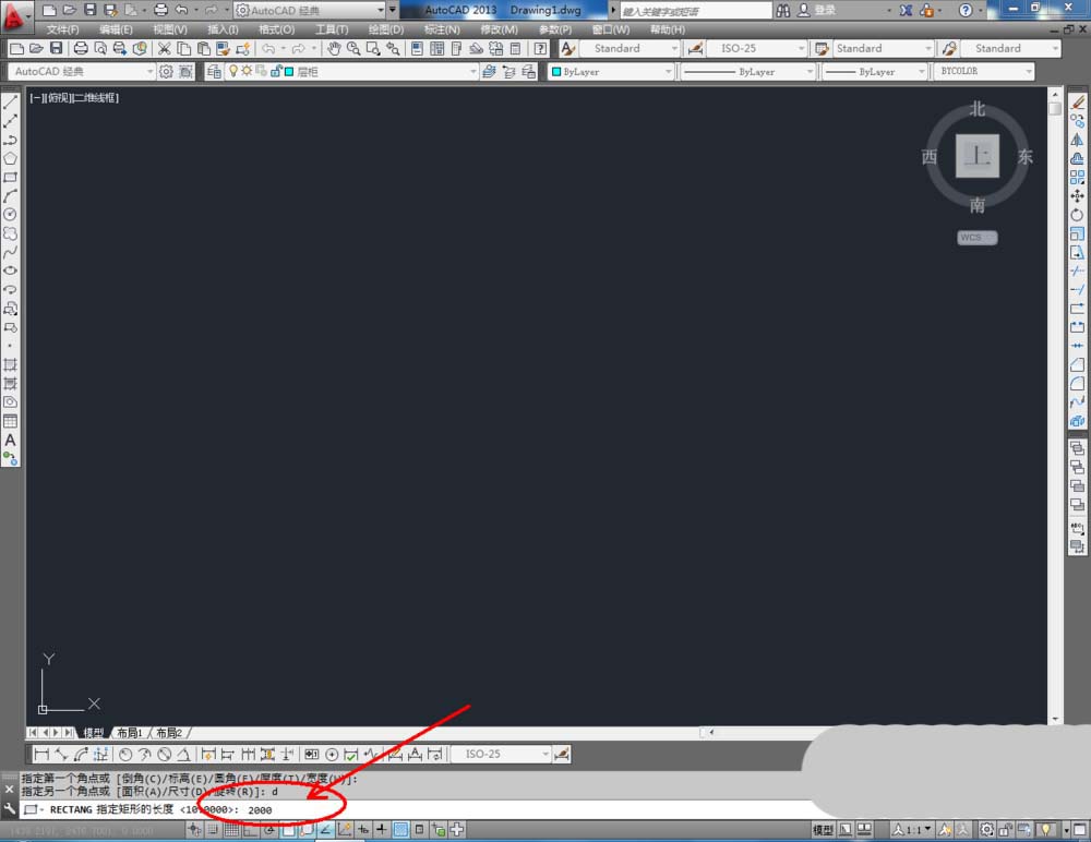 2、點擊【矩形工具】,按圖示在命令欄輸入:d并按下空格鍵,輸入長度值:2000并按下空格鍵,繼續輸入寬度數值:1750并按下空格鍵,完成矩形圖案的繪制。選中圖案,點擊右邊工具欄中的【分解工具】,將圖案炸開(如圖所示);
