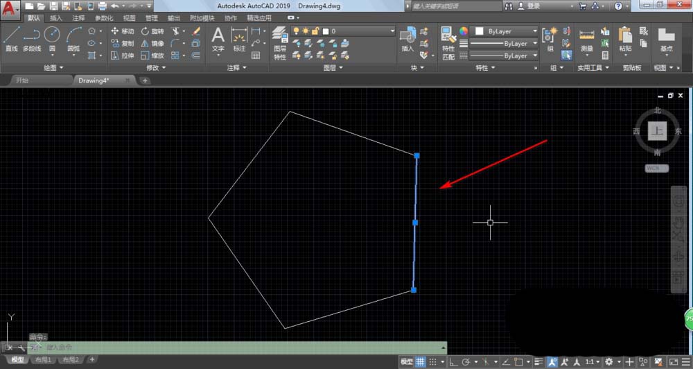 5、這個時候隨便點擊五角形,然后會發現只會選中一條邊,我們就可以進行移動了。