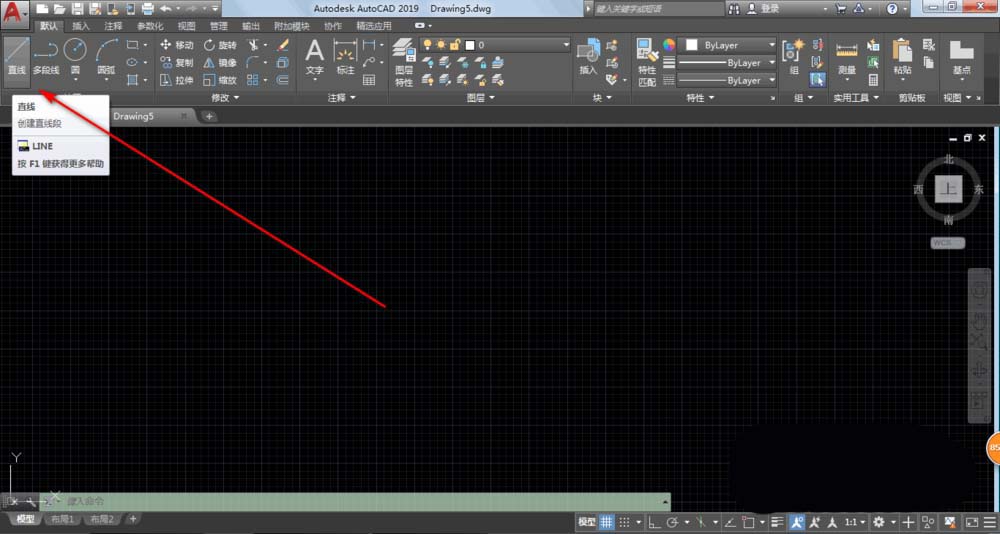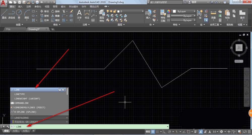 6、當然直線工具也可以通過輸入LINE來進行繪制,方法也是一樣的。