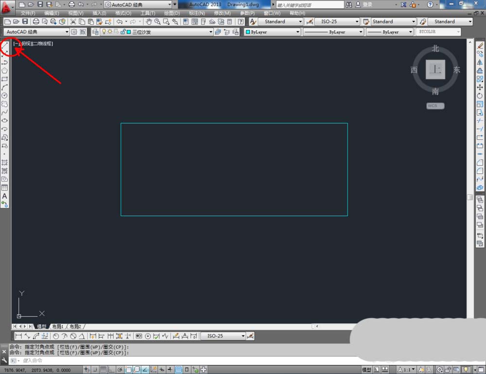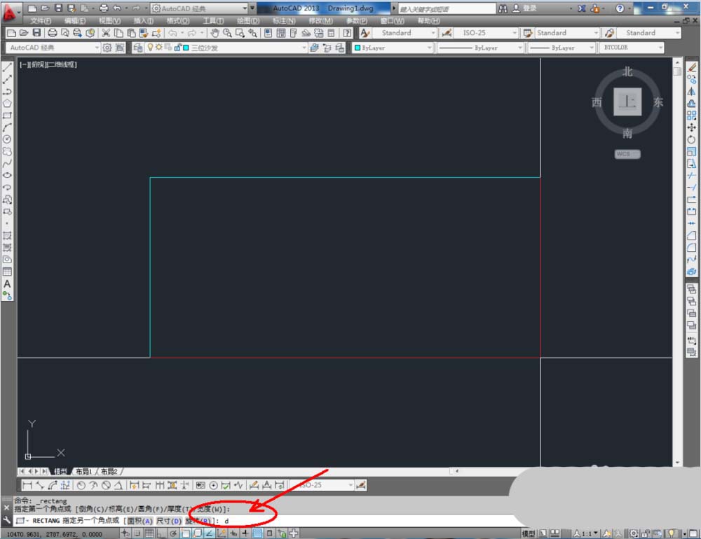 2、點擊【矩形工具】,按圖示在命令欄輸入:d并按下空格鍵,輸入長度數值:2200并按下空格鍵,繼續輸入寬度數值:90 0并按下空格鍵,完成矩形圖案的繪制(如圖所示);