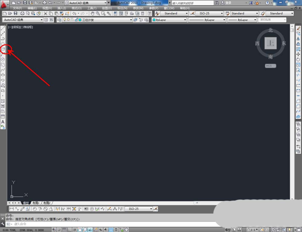 1、打開AutoCAD 2013軟件,點擊【圖層特性管理器】,點擊【新建圖層】,將圖層命名為:三位沙發。點擊色塊,按圖示設置一個圖層顏色,完成三位沙發圖層的設置(如圖所示);
