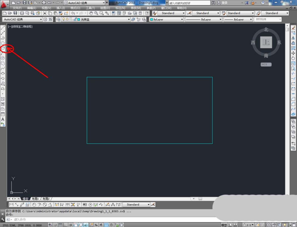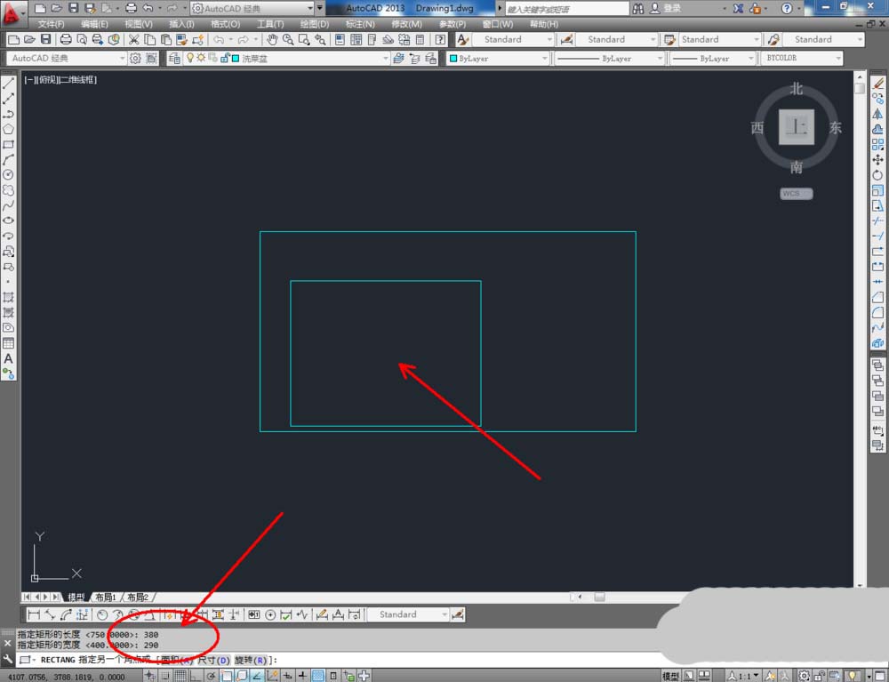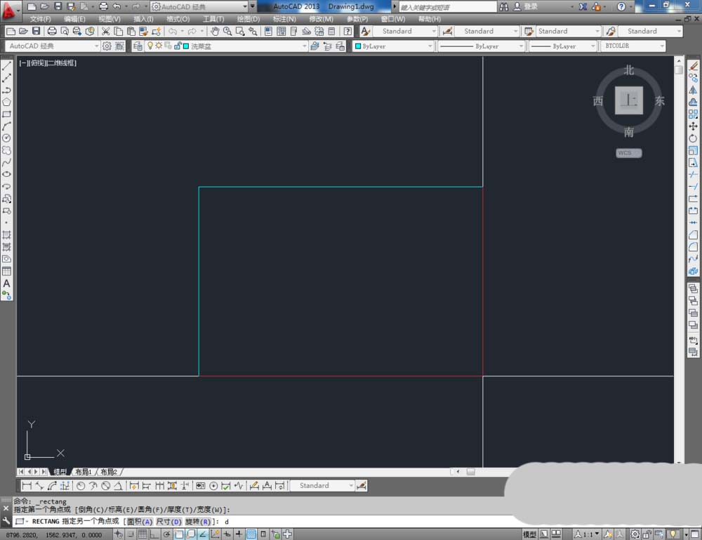 2、點擊【矩形工具】,按圖示在命令欄輸入:d并按下空格鍵,輸入長度數值:750并按下空格鍵,繼續輸入寬度數值:400并按下空格鍵,完成矩形圖案的繪制(如圖所示);