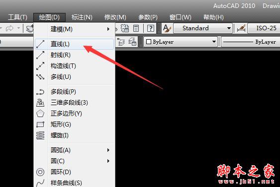 5. 現在我們打開CAD,選擇菜單欄的繪圖--直線,或者直接輸入直線命令PL
