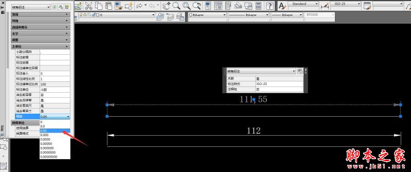 3. 在左上角的特性面板上的“主單位精度”欄,我們可以更改它的精度,也可以任意選擇保留幾位小數點