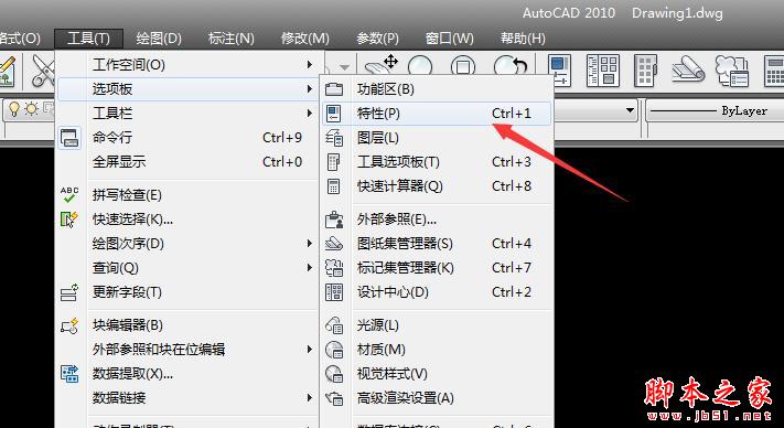 2. 很簡單,我們選擇菜單欄的工具--選項板--特性,上面也有顯示快捷鍵是CTRL+1