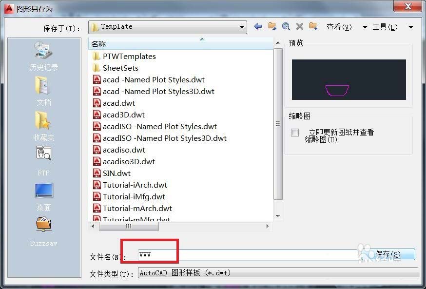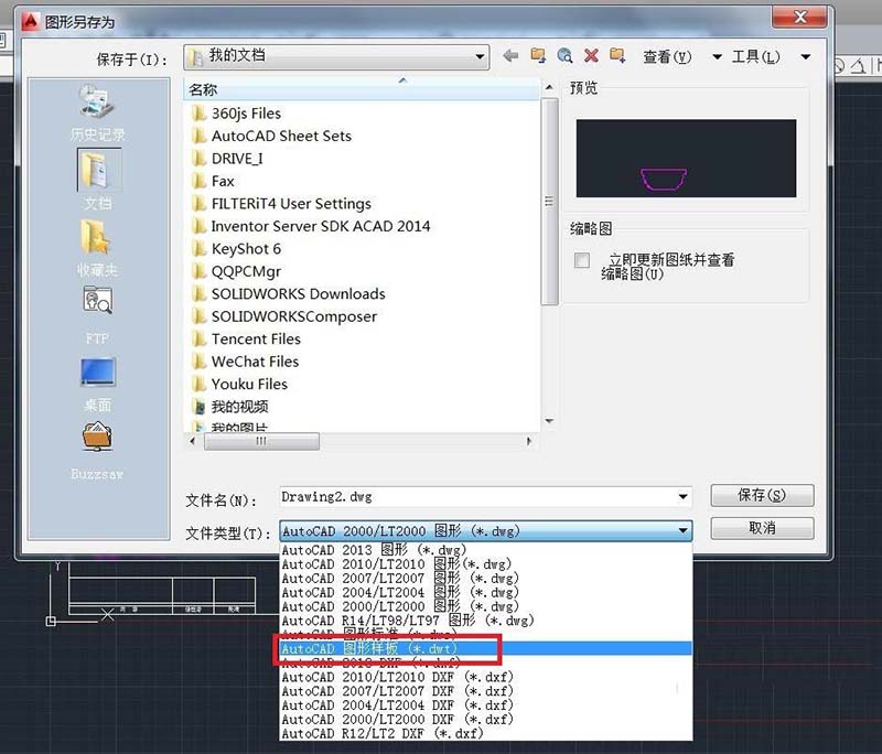 4、選擇另存的格式為---圖形樣板 DWT---格式