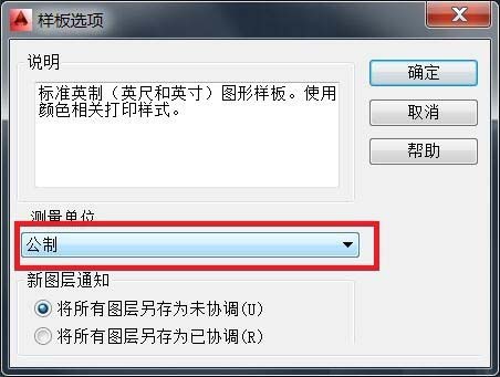 6、這時會彈出一個菜單---選擇模板的單位---確定--然后關(guān)閉文件