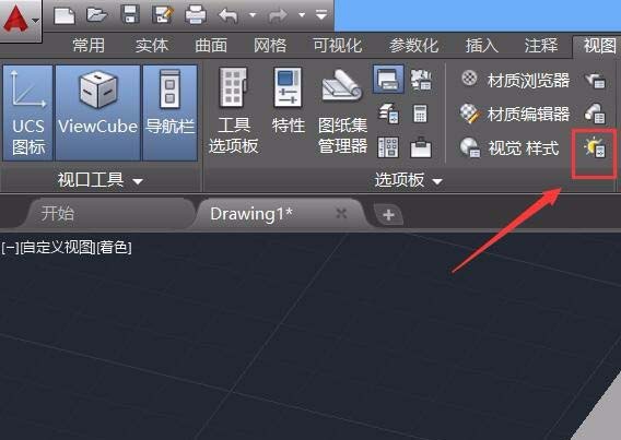 3、創建好模型之后我們在菜單里找到陽光特性選項板,如圖所示: