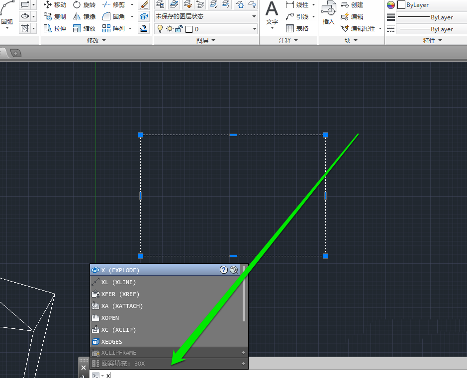 4、接下來,我們點擊命令窗口,進行輸入X命令。