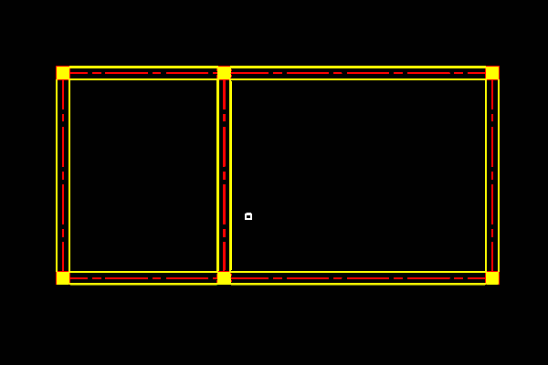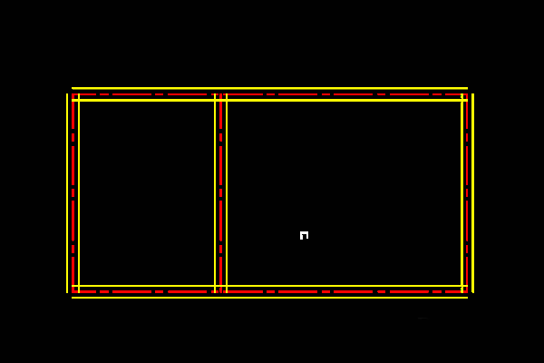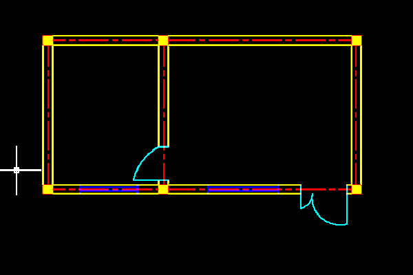 2、軸線繪制好以后,接下來繪制墻體。運用軟件中的偏移功能將軸線兩面偏移,偏移后將線條的顏色改為黃色,將線條的線型改為直線。這樣墻體就繪制好了。