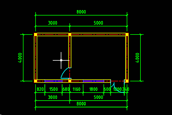 5、門窗繪制好以后,選擇標注中的線性來對圖紙進行標注尺寸。標注尺寸的顏色一般都選用綠色。