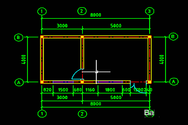 1、首先,運用繪圖功能中的直線按照比例尺寸繪制出軸網。軸網繪制我們一般將軸網的顏色選擇為紅色,軸網的線型選擇為虛線形式。這樣做的目的為了區分線條,圖紙繪制好以后看圖容易一目了然。