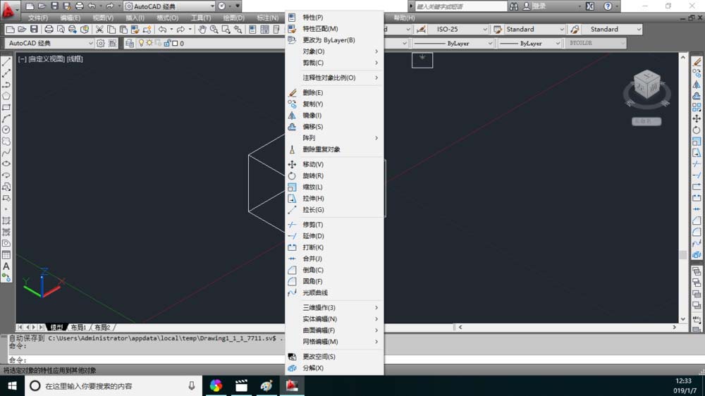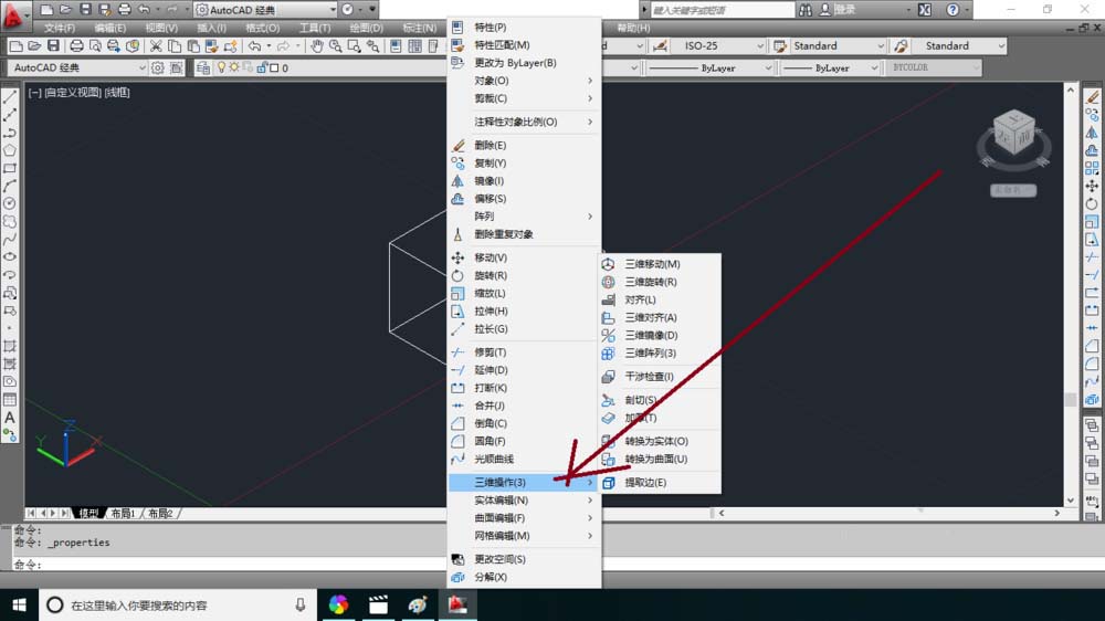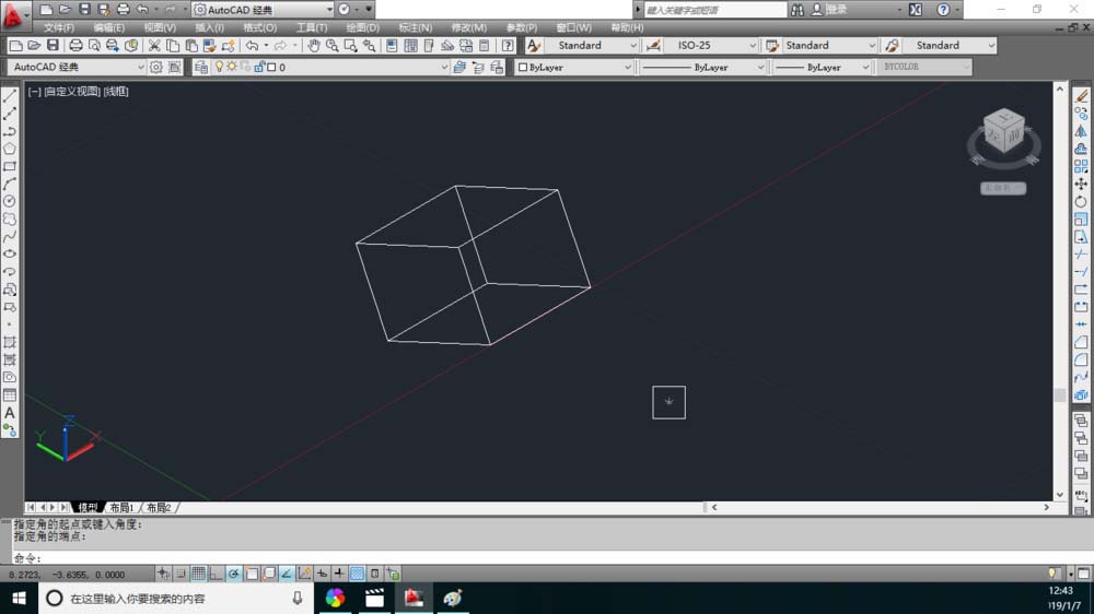 1、在繪圖窗口中比如有正方體的圖形。