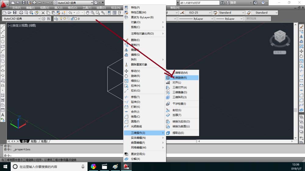 CAD長方體怎么進行三維旋轉? cad三維旋轉功能的使用方法