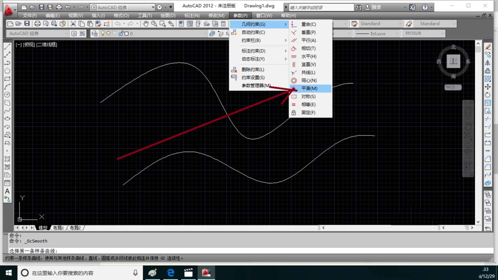 3、然后在選項中幾何約束又下列選項中點擊平滑選項命令。