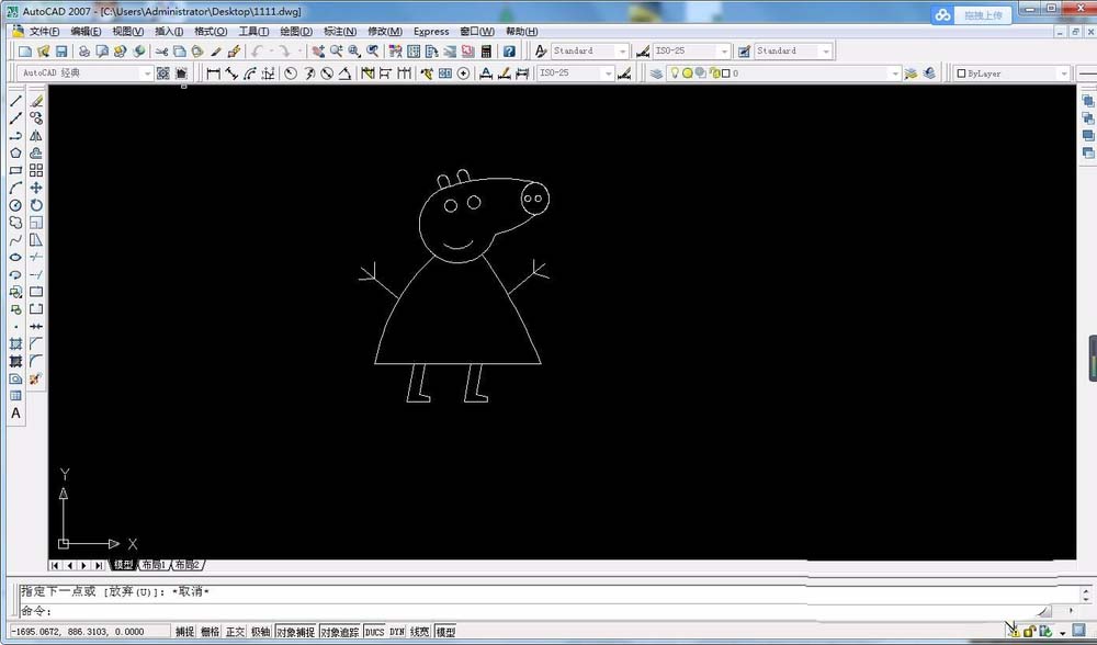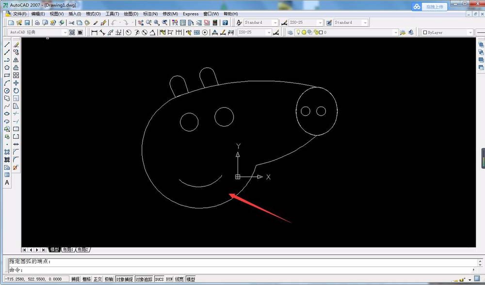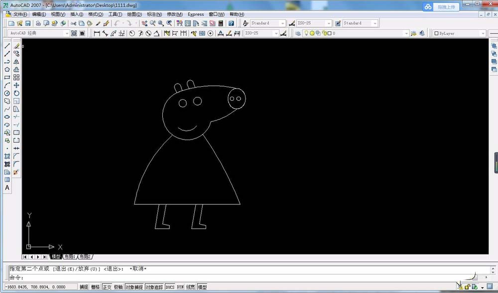cad2008怎么臨摹圖片中的小豬佩奇?