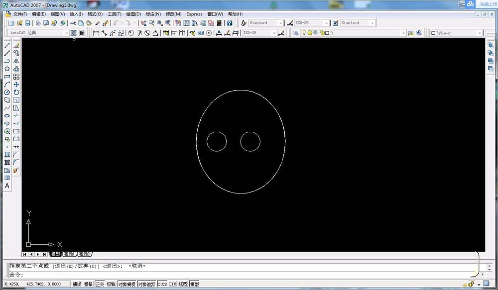 1、打開Cad軟件,利用工具欄中圓和橢圓的命令畫出小豬佩奇的鼻子,如圖所示;