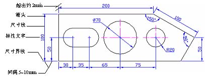 在機械制圖或其他工程繪圖中,一個完整的尺寸標注應由標注文字、尺寸線、尺寸界線、尺寸線的端點符號及起點等組成。